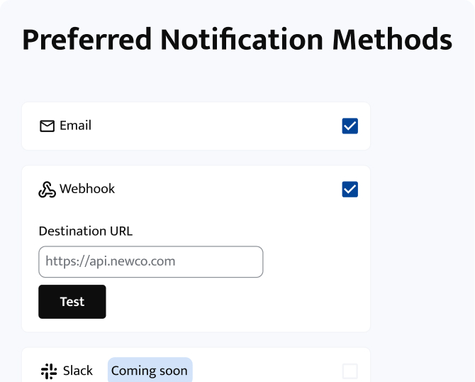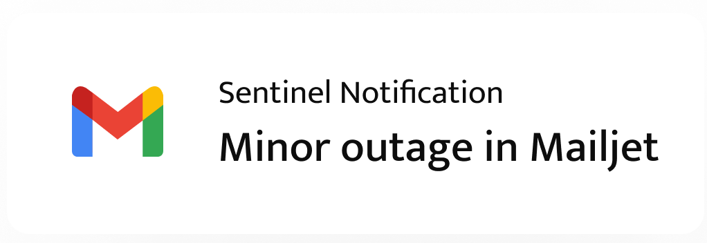 Get instant notifications about outages with Sentinel via Email or webhooks (or both!), so your team can resolve issues as soon as possible.